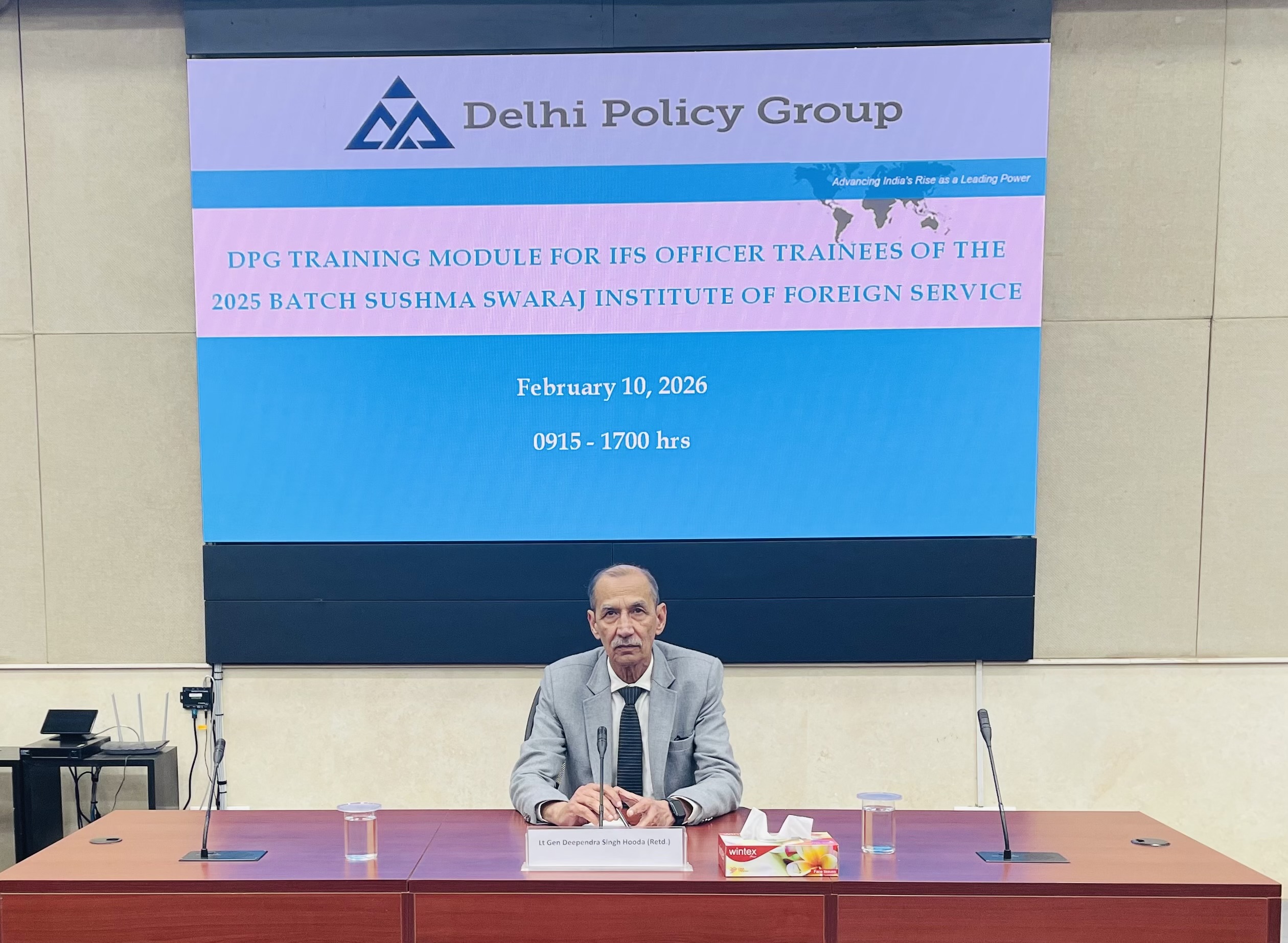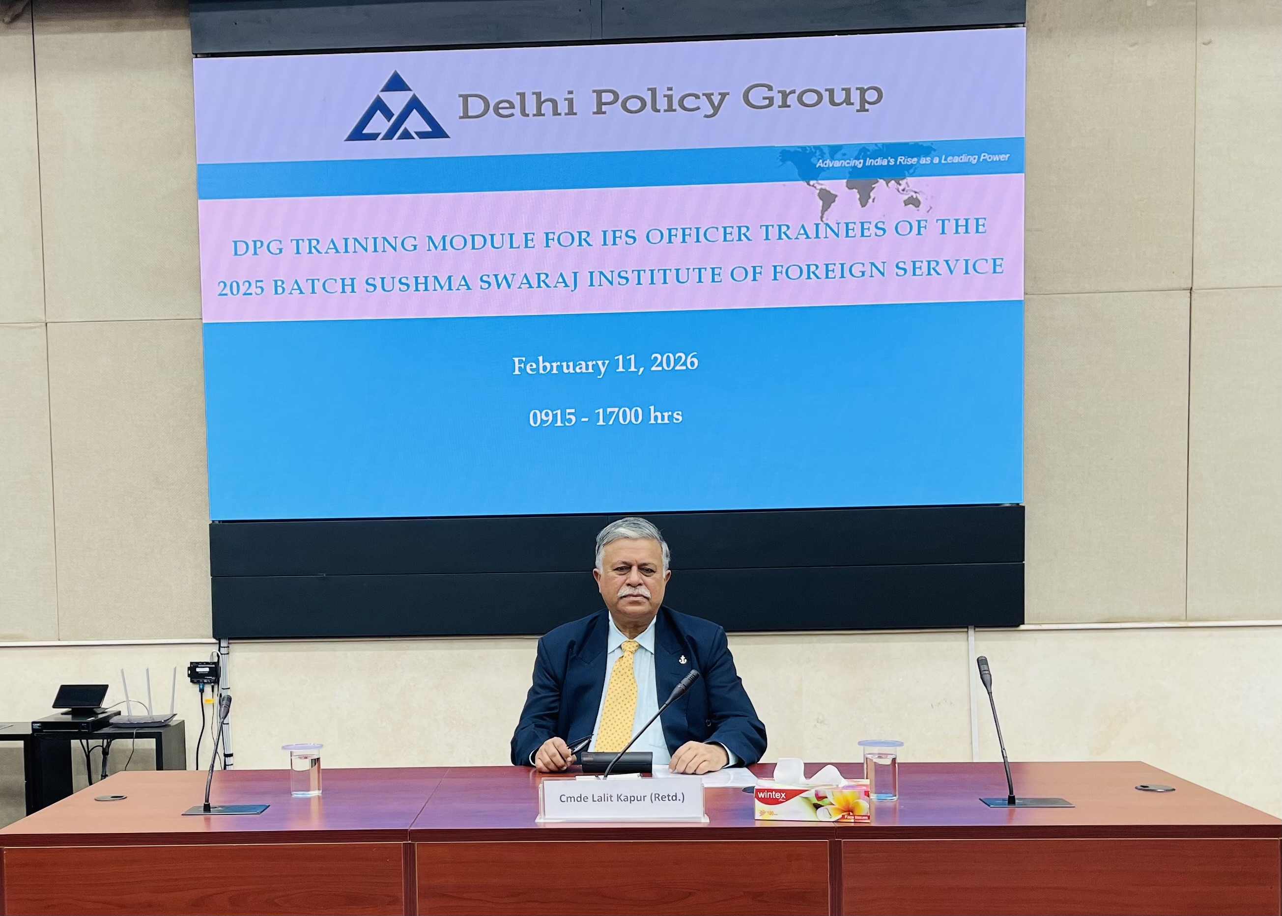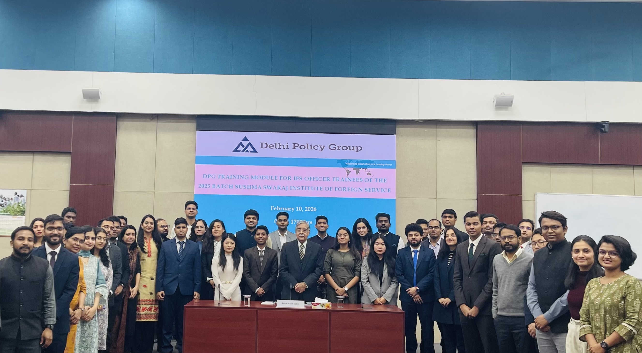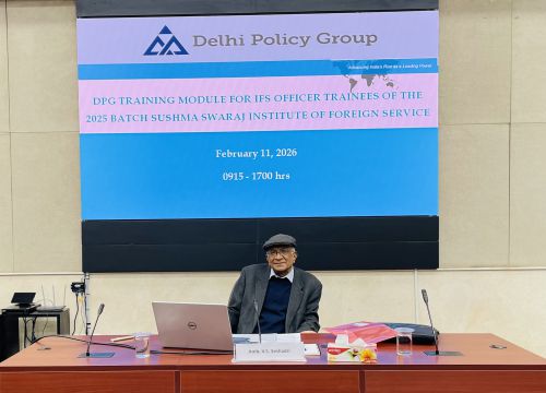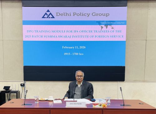 The Delhi Policy Group (DPG) Senior Faculty conducted a two-day series of lectures for IFS Officer Trainees (OTs) of the 2025 Batch at the Sushma Swaraj Institute of Foreign Service (SSIFS) on February 10-11, 2026. This was part of the scheduled training module for IFS OTs organised by SSIFS, covering various dimensions of India’s diplomacy, defence strategy and economic security. The lectures were followed by interactive Q&A discussions with the OTs on the subjects covered by each speaker.