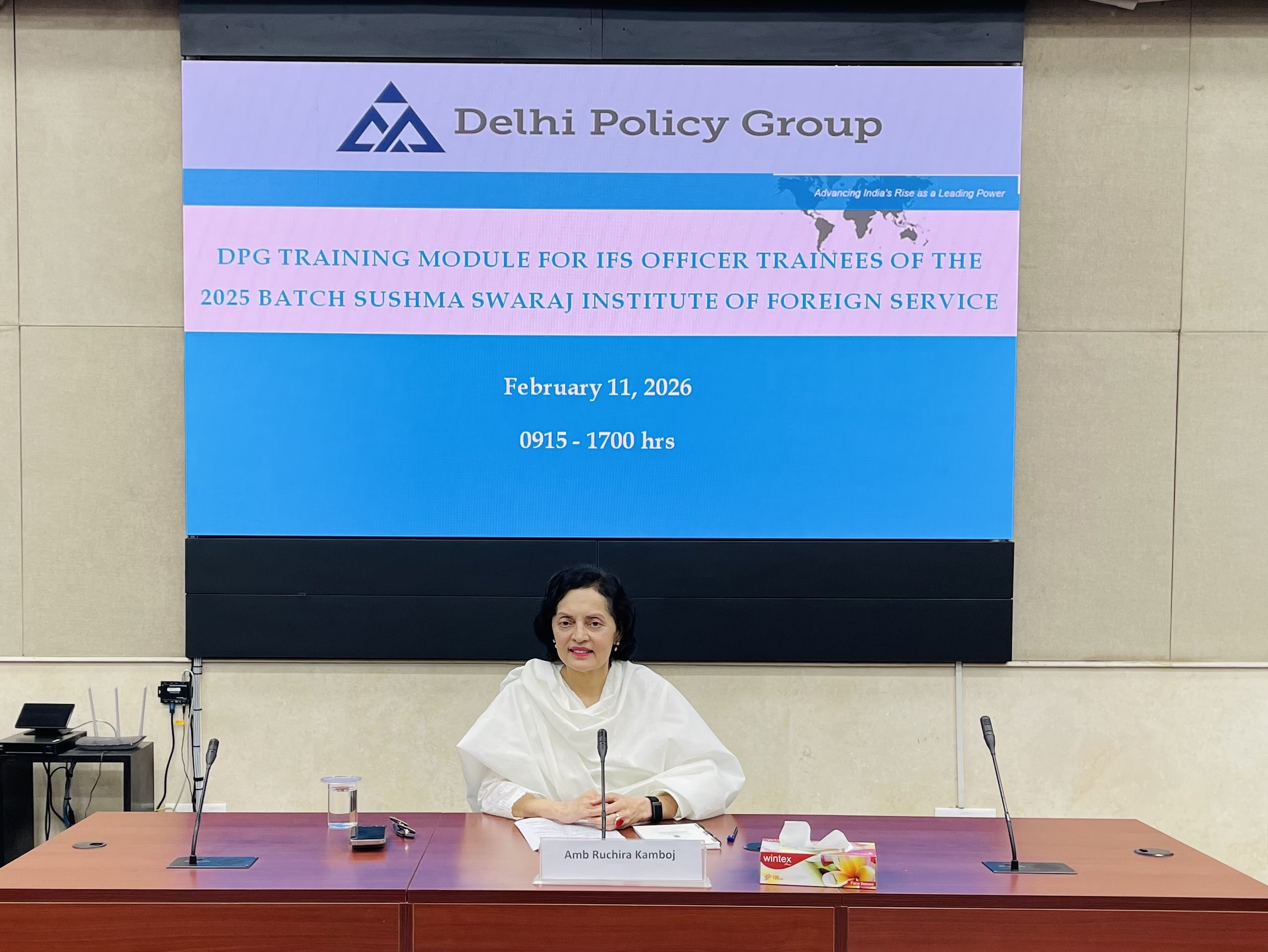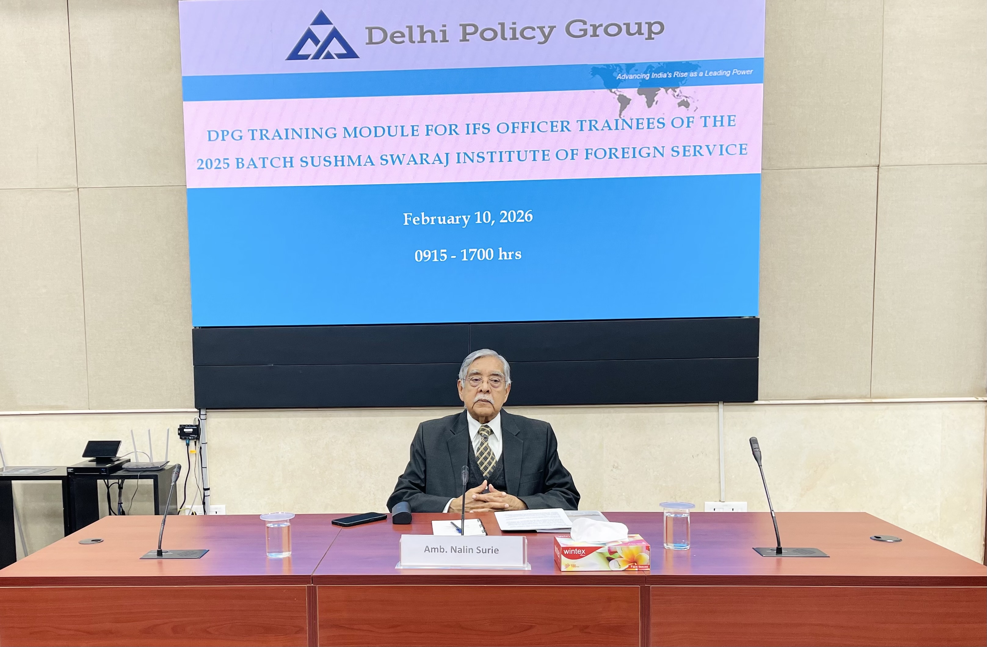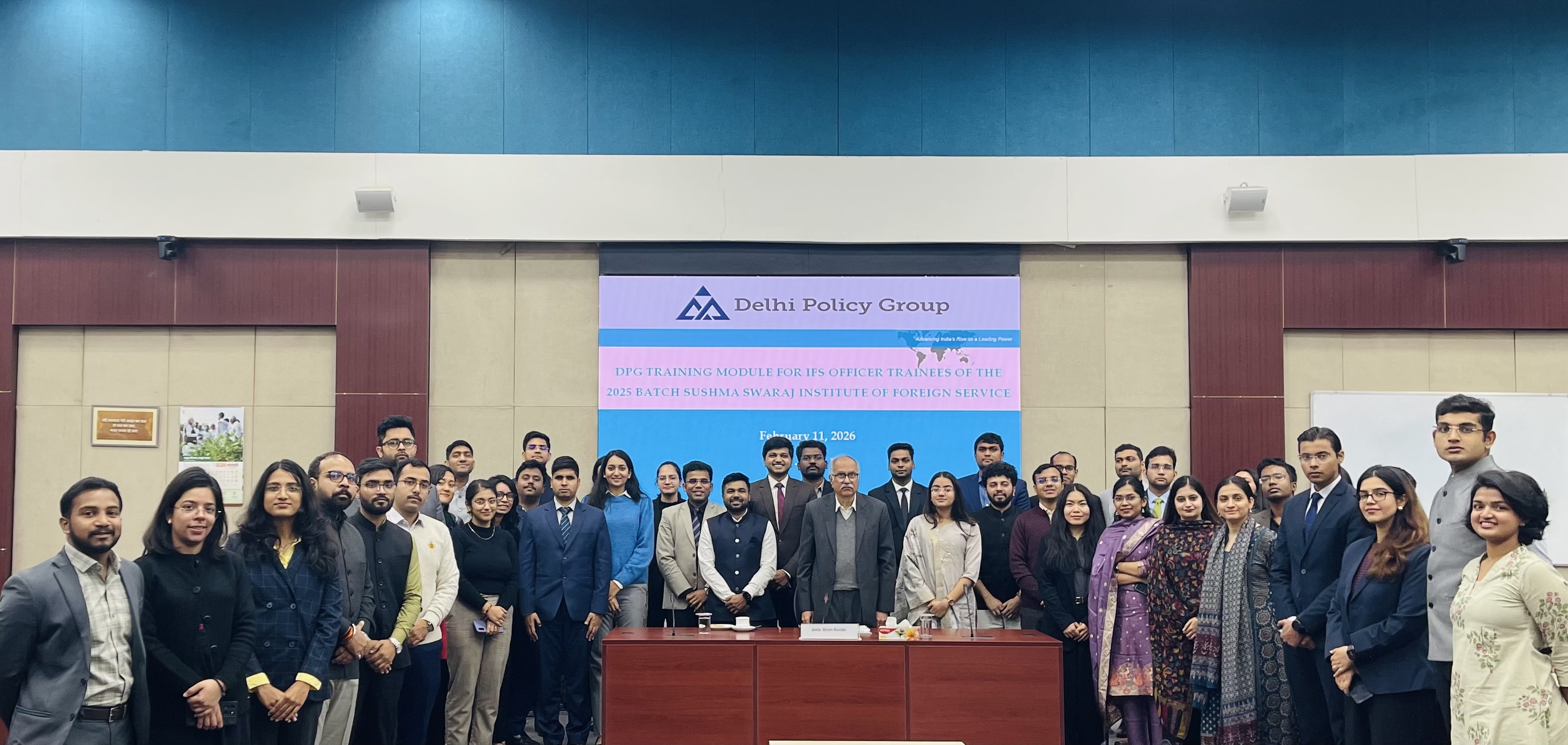 The Delhi Policy Group (DPG) Senior Faculty conducted a two-day series of lectures for IFS Officer Trainees (OTs) of the 2025 Batch at the Sushma Swaraj Institute of Foreign Service (SSIFS) on February 10-11, 2026. This was part of the scheduled training module for IFS OTs organised by SSIFS, covering various dimensions of India’s diplomacy, defence strategy and economic security. The lectures were followed by interactive Q&A discussions with the OTs on the subjects covered by each speaker.